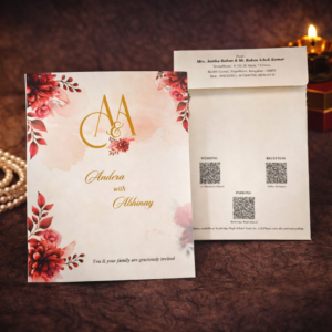 This design features rich burgundy floral elements, soft watercolor textures, and a customized couple monogram on the front cover. The invitation opens in a bi-fold (book style) format, giving you space to neatly display all wedding details.