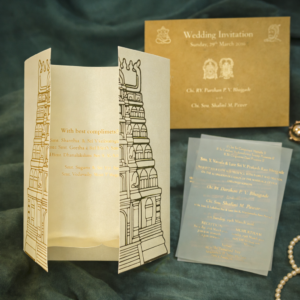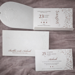 - Main Card: 300–350 GSM Premium Matte Ivory Board
