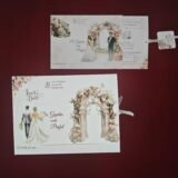 This invitation is thoughtfully designed for couples who want to go beyond traditional cards and add a personal touch to their wedding stationery. The highlight of this design is the custom couple illustration or photo feature, where the bride and groom can be represented in an artistic style, making the invitation feel unique and emotionally special.