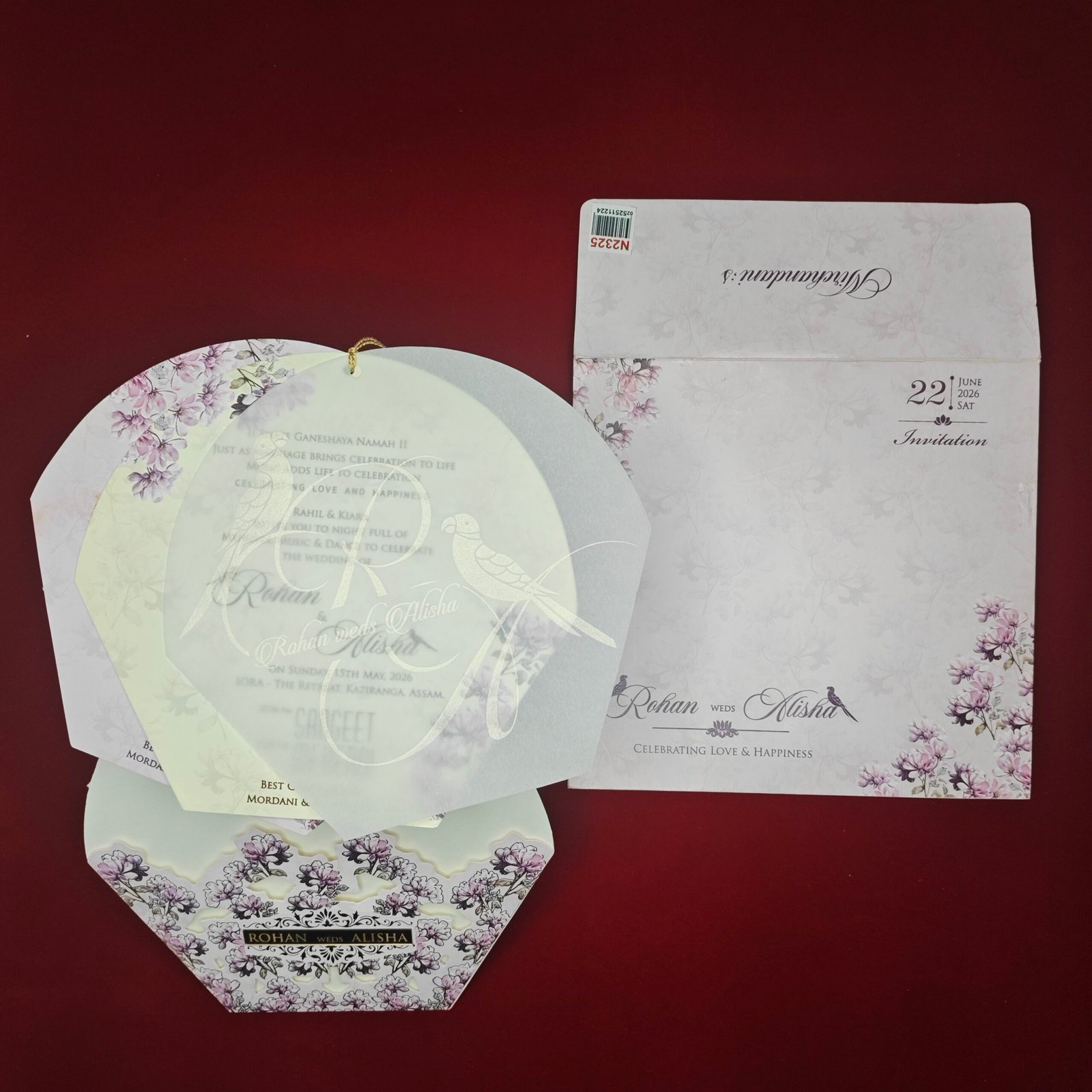 The combination of floral artwork, bird motifs, and vellum layering creates a romantic and artistic invitation that stands out while maintaining elegance. Printed on premium materials with fine detailing, this invitation is ideal for couples looking for a unique and luxurious wedding card with a soft aesthetic.